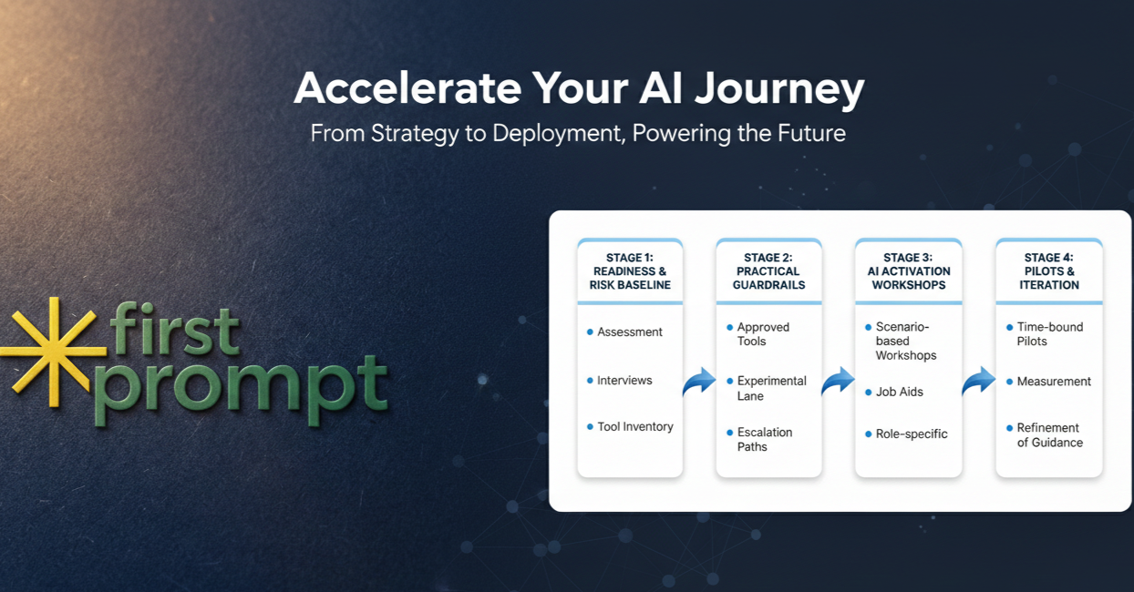 Our work follows a clear progression from understanding how AI is being used today, to setting practical guardrails, to hands-on practice, to real-world pilots and iteration. This structure helps ensure curiosity turns into confident, responsible use over time.